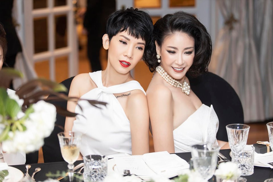 Hà Kiều Anh đọ sắc bên siêu mẫu Xuân Lan trên bàn tiệc.