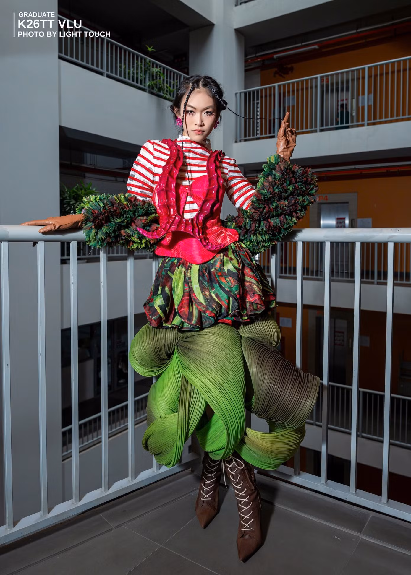 BST Looms of Fantasia nhận về lời khen từ hội đồng giám khảo, giúp Ngô Nghi Dung trở thành Thủ khoa ngành Thiết kế thời trang Đại học Văn Lang. NTK trẻ cho biết danh xưng này vừa là niềm vinh dự, tự hào nhưng cũng là áp lực vô hình với cô.