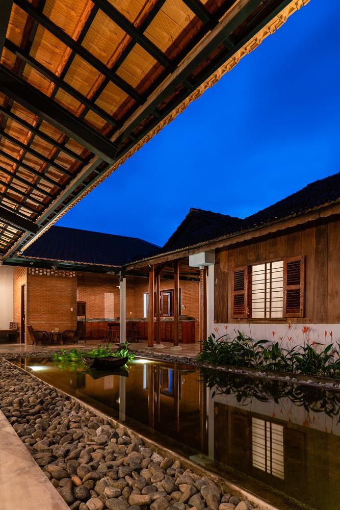TPO - Không gian công trình được phát triển theo bố cục nhà truyền thống, các phòng chức năng nối với nhau bằng hành lang và ngăn cách bởi hồ nước.