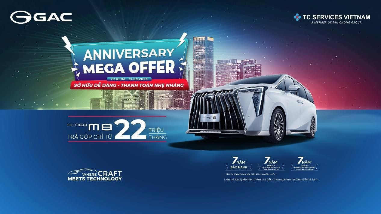 GAC All-New M8 là mẫu MPV cao cấp được phát triển dành riêng cho khách hàng yêu cầu cao về tiện nghi, thẩm mỹ và trải nghiệm. Thiết kế ngoại thất bề thế với lưới tản nhiệt khổ lớn, cụm đèn LED ma trận ấn tượng kết hợp cùng khoang nội thất chuẩn thương gia – nơi nổi bật với hàng ghế giữa tách biệt, tích hợp massage, làm mát, sưởi, cùng hệ thống lọc khí hiện đại và cửa sổ trời toàn cảnh hiệu ứng ánh sao. Xe trang bị động cơ 2.0T GDI Turbo mạnh mẽ, đi kèm hộp số tự động 8 cấp Aisin, mang lại cảm giác lái đầy phấn khích, linh hoạt nhưng vẫn tiết kiệm nhiên liệu. An toàn cũng là yếu tố ưu tiên hàng đầu trong thiết kế của M8 với hệ thống “ma trận” túi khí toàn diện 360° - lần đầu tiên có trong phân khúc MPV với túi khi cho hàng ghế sau. Tính năng này cùng các hệ thống hỗ trợ đỗ xe tự động (FAPA), hệ thống trợ lái nâng cao (ADAS)… giúp All-New M8 trở thành mẫu xe dẫn đầu trong việc bảo vệ hành khách với gần 20 tính năng an toàn.