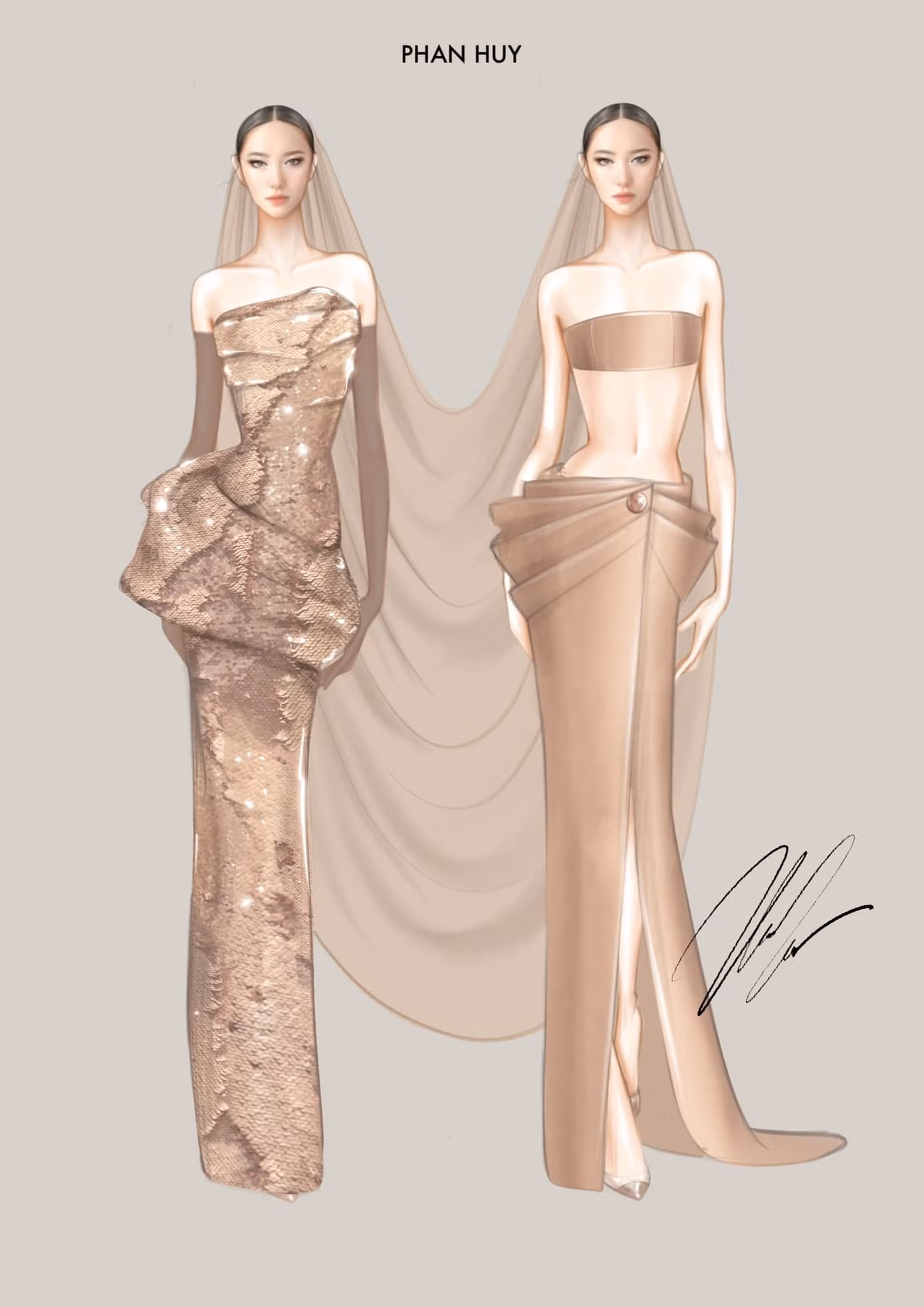 Cặp đôi siêu mẫu Minh Triệu - Hoa hậu Kỳ Duyên khoe sắc vóc trong thiết kế màu kem thanh lịch, sang trọng. Chi tiết voan cài đầu nối liền trở thành điểm nhấn thu hút. Được biết, mẫu đầm hai mảnh của Hoa hậu Kỳ Duyên được ê-kíp của Phan Huy thực hiện chỉ trong 7 tiếng trước khi siêu thảm đỏ diễn ra.