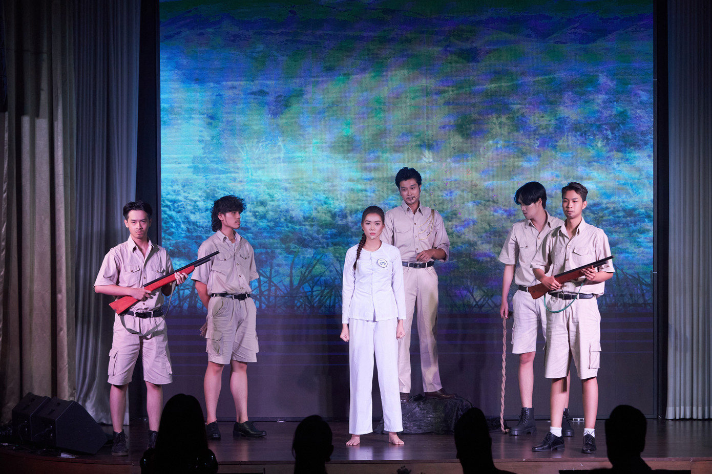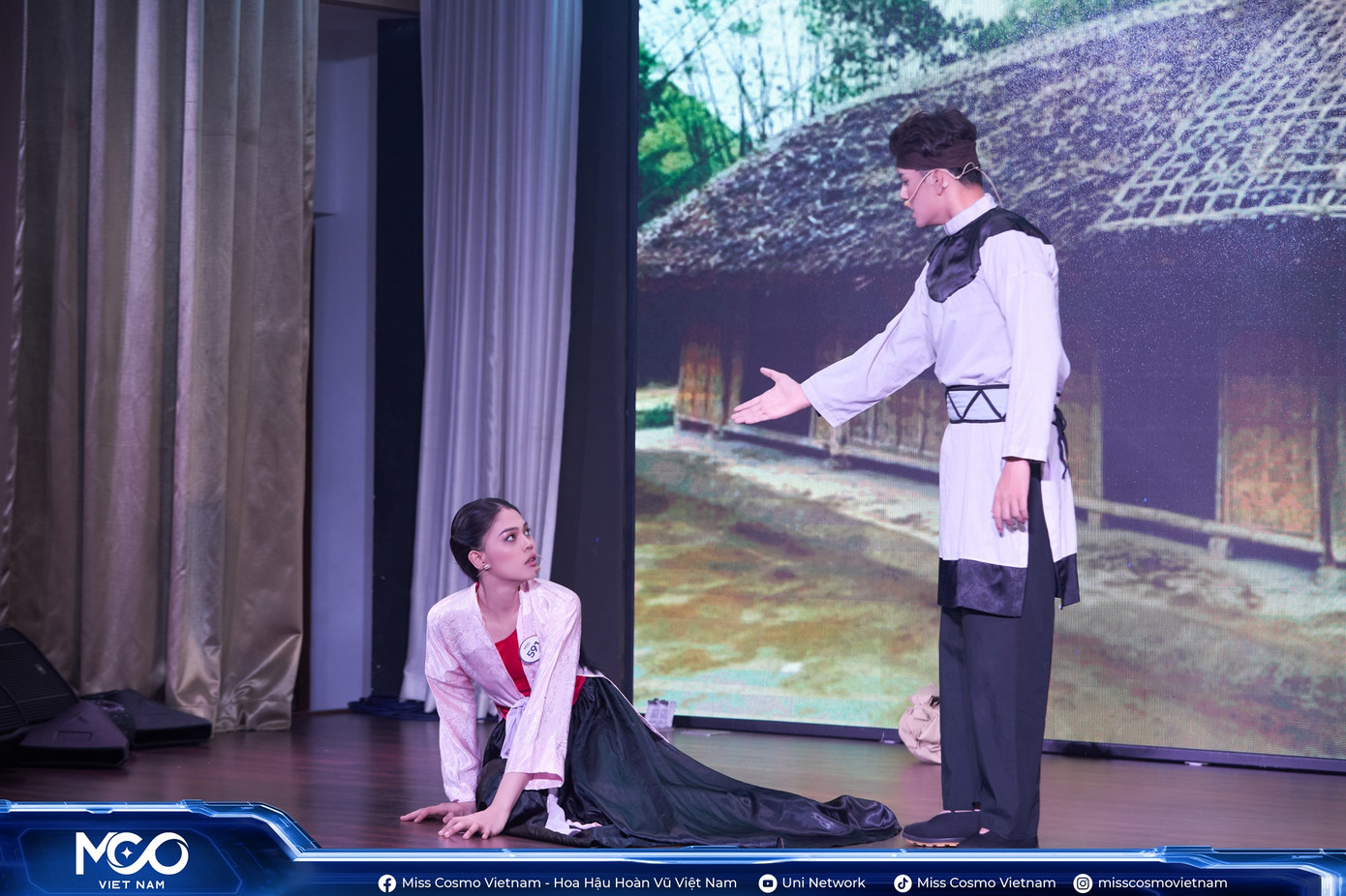 Nhiều thí sinh còn tái hiện những khoảnh khắc lịch sử hào hùng qua những màn kịch đặc sắc, thí sinh Huỳnh Ngọc Lan Anh (SBD 375) mang đến vở kịch lịch sử mang tên Lekima Trong Gió.