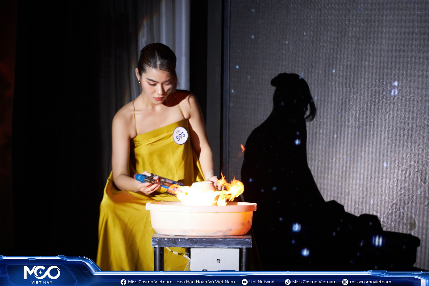 Người đẹp Nguyễn Hoàng Bảo Trân (SBD 593) cũng mang đến phần thi độc đáo là làm gốm. Bảo Trân chia sẻ, để chuẩn bị cho tiết mục này, cô đã dành tất cả thời gian trống của bản thân để học làm gốm, với mong muốn thể hiện phần thi một cách tốt nhất.