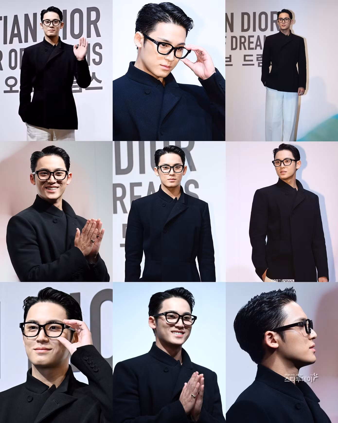 "Hoàng tử Dior" Mingyu SEVENTEEN tiếp tục có tạo hình gây sốt khi dự sự kiện. Mỹ nam 9X khoác lên mình look 22/49 trong BST Thu 2025 dành cho nam của nhà mốt. Kiểu tóc vuốt ngược, gọng kính vuông vức cùng làn da rám nắng trở thành điểm nhấn đắt giá, tôn lên vẻ ngoài bảnh bao, nam tính của nam idol.