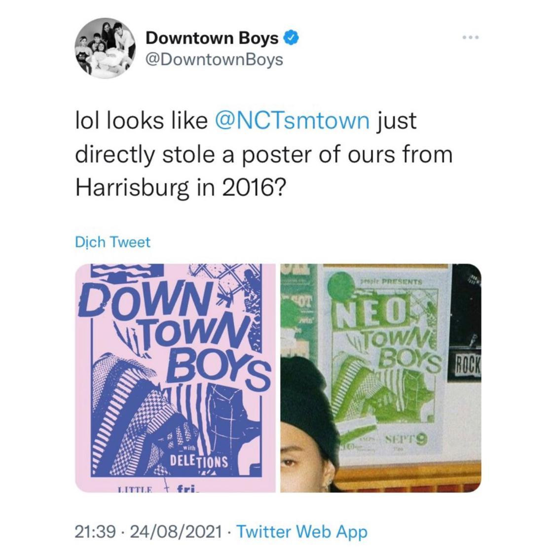 Downtown Boys thẳng thừng tag thẳng tài khoản có tick xanh của NCT và SM: “Trông như thể NCT vừa trực tiếp đánh cắp poster của chúng tôi vậy”.