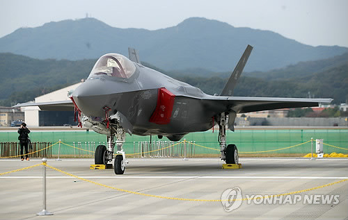 Tiêm kích tàng hình F-35A được trưng bày tại căn cứ không quân Seoul trong khuôn hổ ADEX 2017. Ảnh: Yonhap