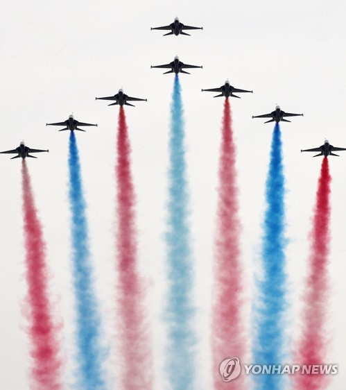 Đội máy bay của Hàn Quốc trình diễn hôm nay, 16/10 trước báo giới. Ảnh: Yonhap