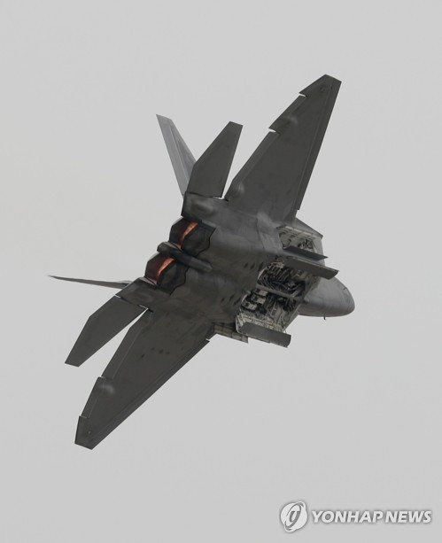 F-22 Raptor của Mỹ khoe uy lực trước báo giới trong buổi diễn tập hôm nay, 16/10 tại căn cứ không quân Seoul (Hàn Quốc). Ảnh: Yonhap