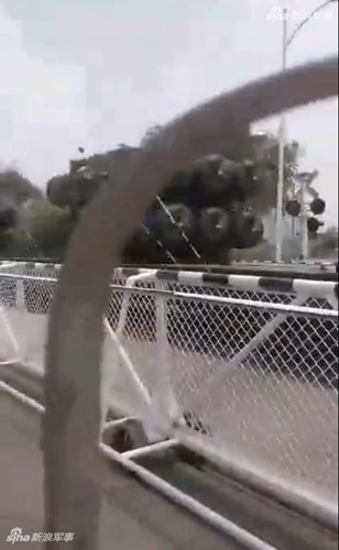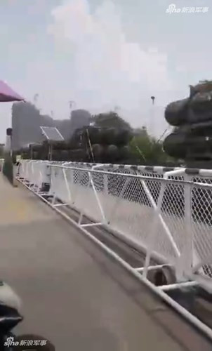 Hình ảnh về HQ-16 do người đi đường chụp lại khi tàu đi qua đường ngang. Hình ảnh có chất lượng kém nhưng có thể nhận thấy hàng chục cụm phóng với 6 đạn/cụm đang được chuyển đi. Ảnh: Sina.