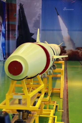 Trong ảnh là một tên lửa Fatah-313 trên bệ phóng di động tại một trung tâm thử nghiệm.