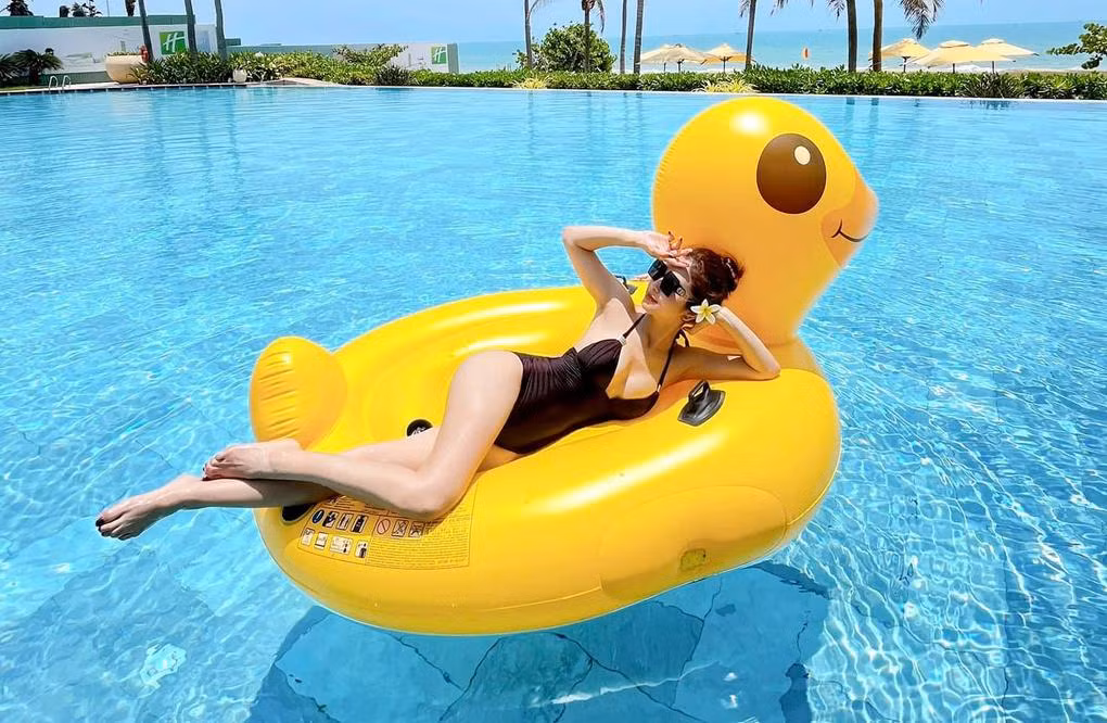 Hoa hậu Kỳ Duyên chưa bao giờ khiến khán giả thất vọng khi khoe vóc dáng và lần này cũng vậy. Làn da trắng mịn của Kỳ Duyên càng thêm nổi bật trong bộ đồ tắm đỏ rực.