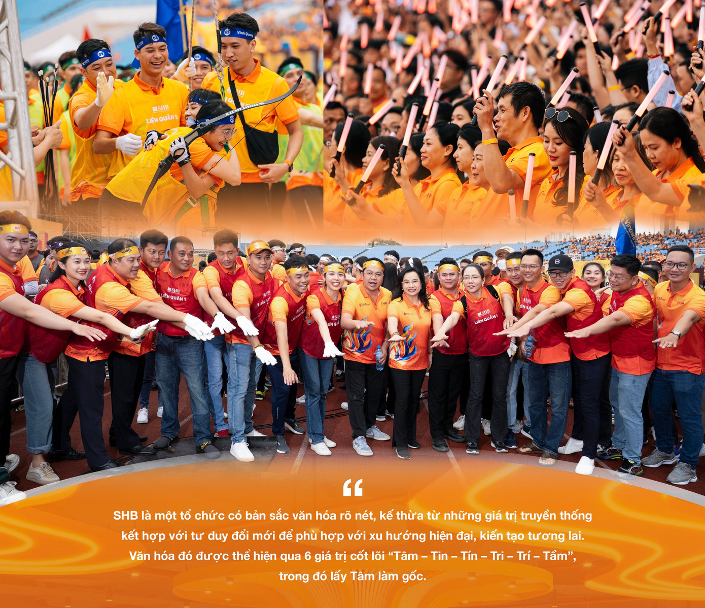 Đỉnh cao cảm xúc trong hành trình năm 2025 của SHB chính là sự kiện “Ngày hội Văn hóa SHB & T&T Group – Vững bước vào Kỷ nguyên mới” với sự tham gia của 15.000 CBNV tại SVĐ Mỹ Đình. Đây là ngày hội có quy mô chưa từng có trong văn hóa doanh nghiệp Việt Nam mang tinh thần thế vận hội quốc tế, từ lễ rước đuốc từ Đền Hùng, ngọn lửa thắp sáng Mỹ Đình, đến kỷ lục quốc ca vang lên từ hàng ngàn trái tim.