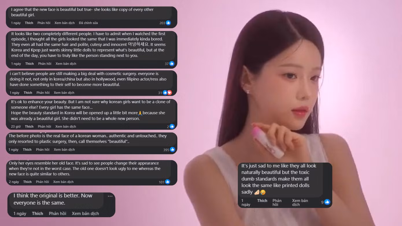 Một số khán giả nhận xét các đường nét nguyên bản của nữ người mẫu vốn đã hài hòa, dễ thương, phần nào gợi nhớ tới "em gái quốc dân" IU. Việc "trùng tu" giúp gương mặt cô thêm hài hòa.