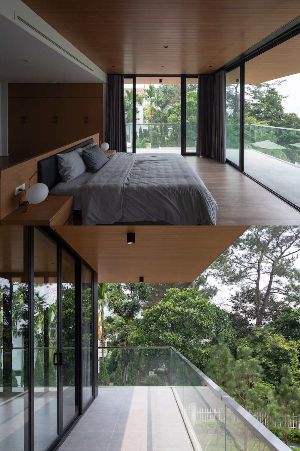Bốn phòng ngủ nằm ở hai tầng nhà đều được tận hưởng khung cảnh thiên nhiên.