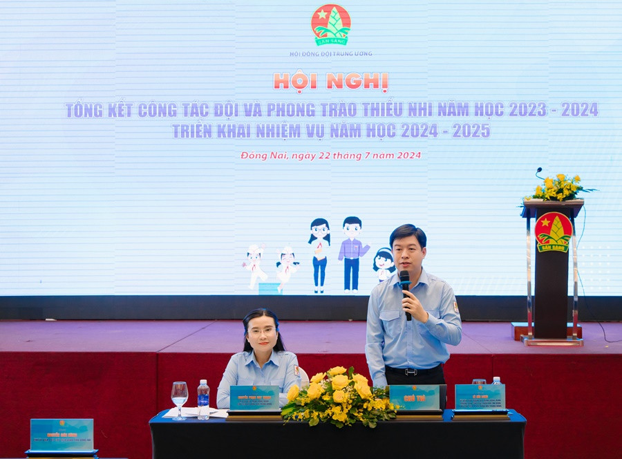 Ngày 22/7, tại Đồng Nai, Hội đồng Đội Trung ương tổ chức Hội nghị tổng kết công tác Đội và phong trào thiếu nhi năm học 2023 - 2024, triển khai nhiệm vụ năm học 2024 - 2025. Chị Nguyễn Phạm Duy Trang - Bí thư T.Ư Đoàn, Chủ tịch Hội đồng Đội Trung ương chủ trì hội nghị.
