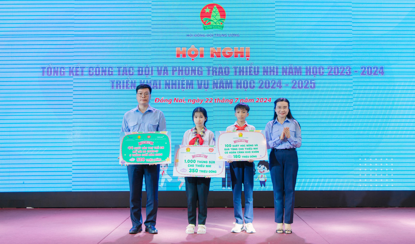 Hội đồng Đội Trung ương đã trao tặng Hội đồng Đội tỉnh Đồng Nai các phần quà và học bổng với tổng giá trị hơn 1 tỷ đồng, bao gồm 1.000 thùng sữa với tổng giá trị 350 triệu đồng; 100 suất học bổng và 150 phần quà tặng cho thiếu nhi có hoàn cảnh khó khăn trị giá hơn 180 triệu đồng và 44 suất học bổng bảo trợ cho 44 em thiếu nhi mồ côi do COVID-19 trong 6 tháng cuối năm 2024 trị giá 528 triệu đồng.
