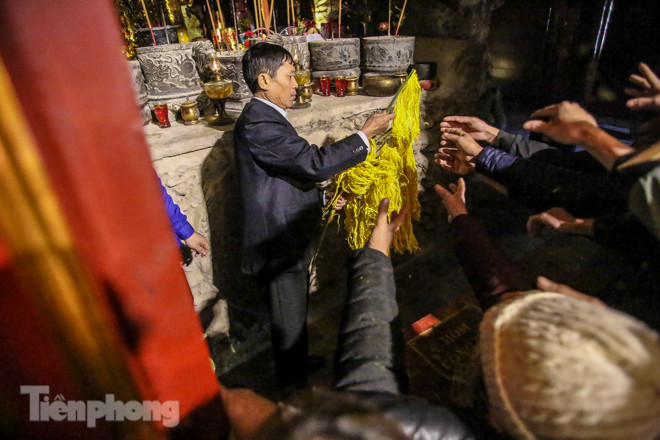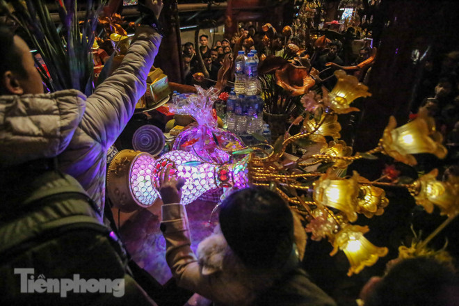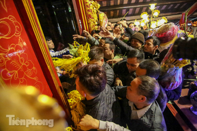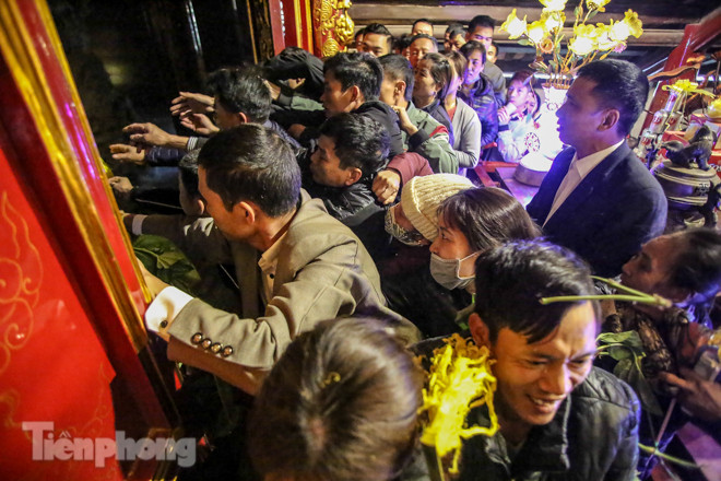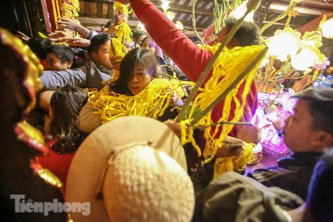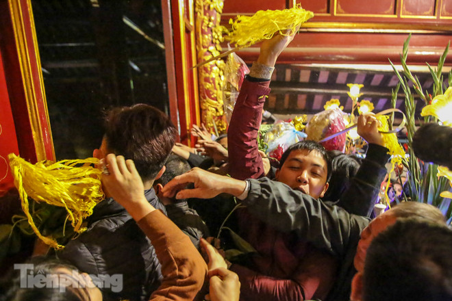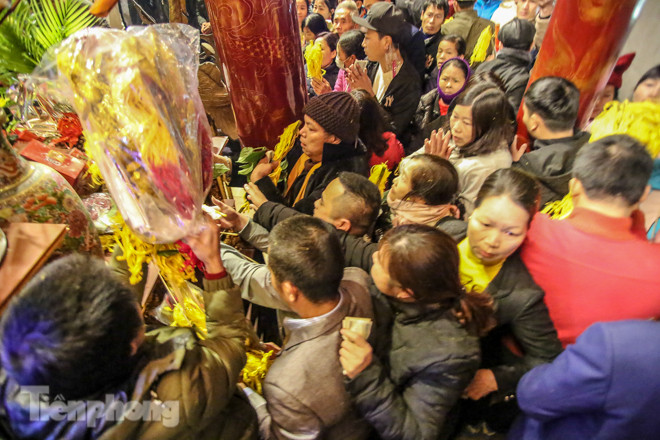 Việc chen lấn, tranh nhau, thậm chí giằng có khiến bàn lễ phía sau bị xô đổ.