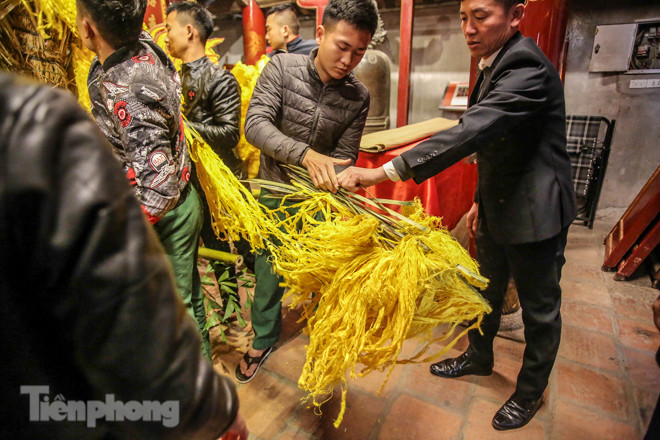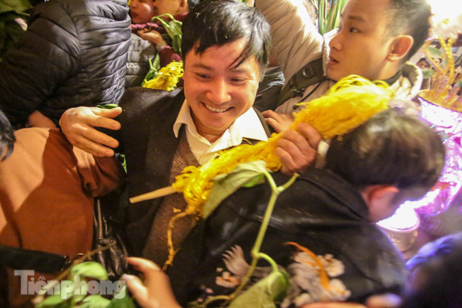 Một người dân lấy được lộc hoa tre sau khi giằng co với rất nhiều người.