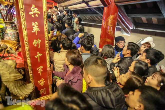 Các lối đi quanh đền Thượng chật cứng người chen lên.