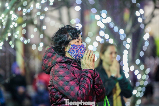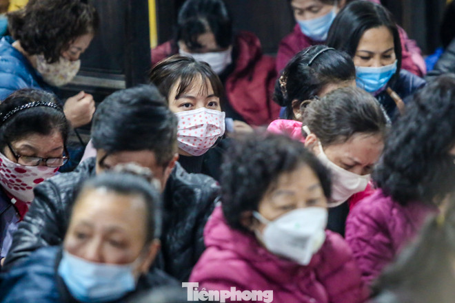 Hà Nội đang trong tình trạng cảnh báo về dịch virus corona nên người dân đi hành lễ với khẩu trang bịt kín ở trên mặt.