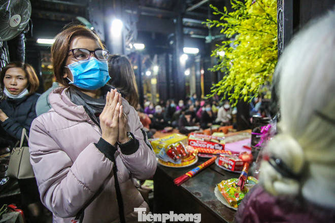 Người dân thoải mái cầu an tại chùa Phúc Khánh (Hà Nội).