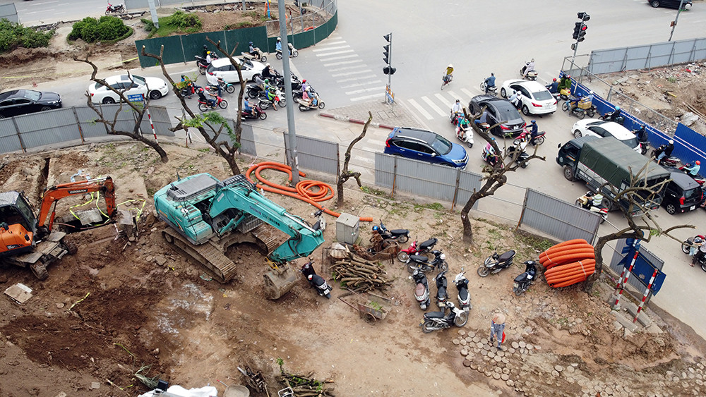 Tại đây, đang xây dựng dự án cầu vượt nút giao thông Hoàng Quốc Việt - Nguyễn Văn Huyên. Nơi đây lâu nay trở thành điểm nóng giao thông của Hà Nội khi thường xuyên diễn ra cảnh ùn tắc kéo dài.