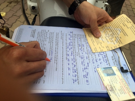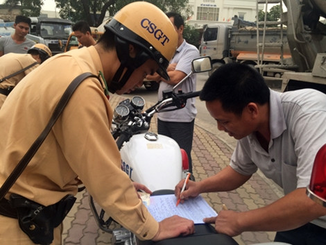 8h30 sáng, tổ công tác có măt tại ngã tư Khuất Duy Tiến- Lê Văn Lương kéo dài. Chỉ 1 tiếng đứng chốt, hơn chục trường hợp vi phạm đã được xử lý nghiêm. Đa phần lái xe cho hay, họ đều biết về quy định giờ vào phố cấm, song vẫn “liều” vi phạm.