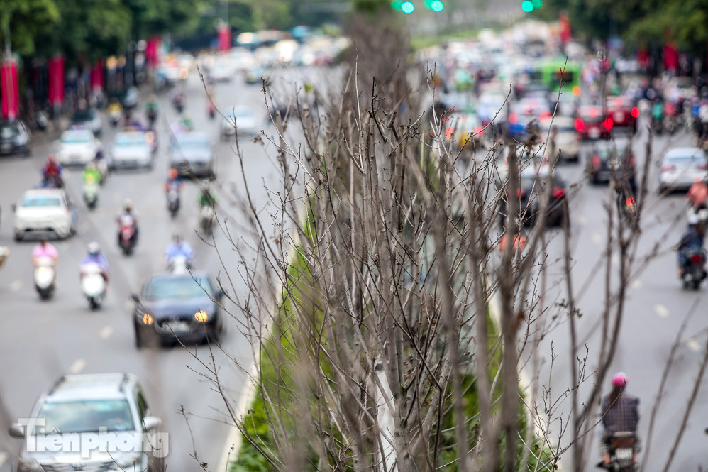 Với hy vọng mang lại vẻ đẹp và cả bóng mát cho con đường Thủ đô, tuy nhiên nhìn vào những "cành củi khô" chỉ thấy thêm oi bức. trong những ngày hè.