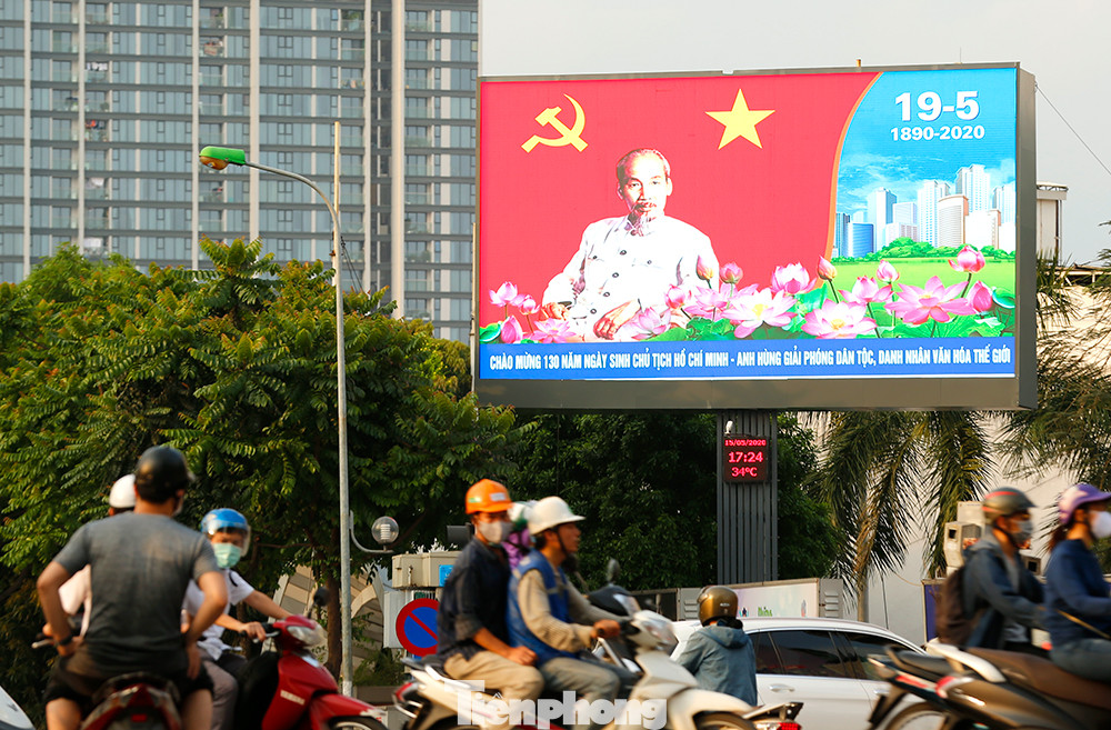 Tại khu trung tâm, các trục đường chính, khu vực đông dân cư luôn có hình ảnh cờ hoa, panô, áp phích, băng rôn với nội dung kỷ niệm 130 năm Ngày sinh Chủ tịch Hồ Chí Minh