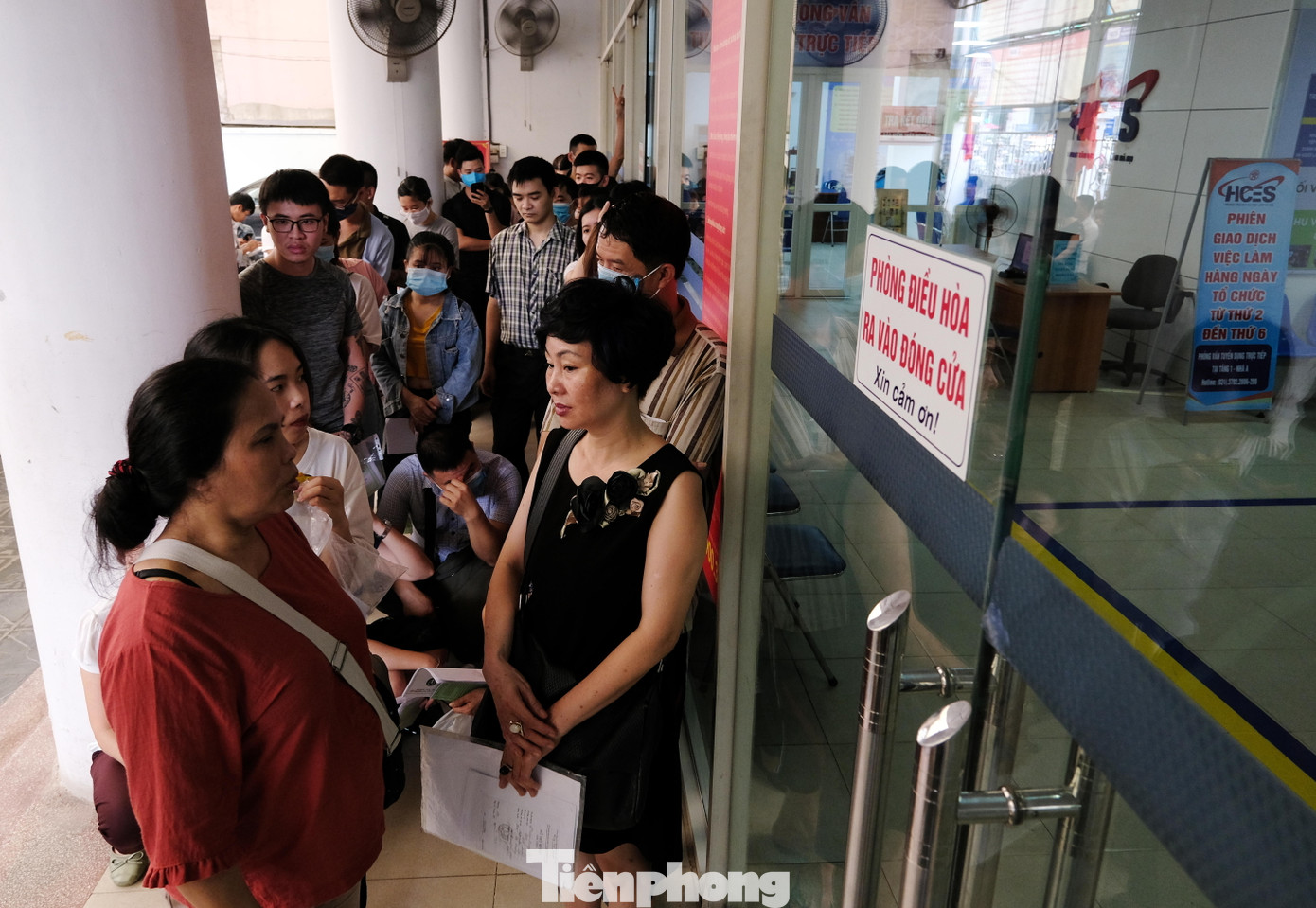 Mong thủ tục hưởng trợ cấp thất nghiệp của mình được hoàn thiện sớm, nhiều người có mặt tại Trung tâm Dịch vụ việc làm Hà Nội từ sáng sớm trước giờ làm việc để xếp hàng. Do nhu cầu nhận trợ cấp thất nghiệp quá lớn nên có những người đến Trung tâm Dịch vụ việc làm nhiều lần mới tới lượt làm thủ tục.
