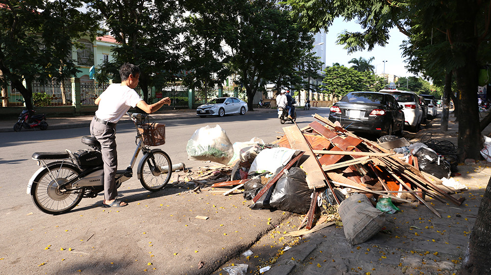 Lượng rác thải quá nhiều, chất thành đống ngay lề đường Trần Quôc Hoàn.