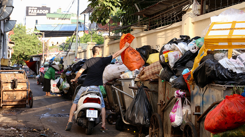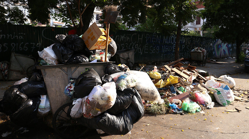 Không có xe rác, người dân vứt rác thành đống bên lề đường.
