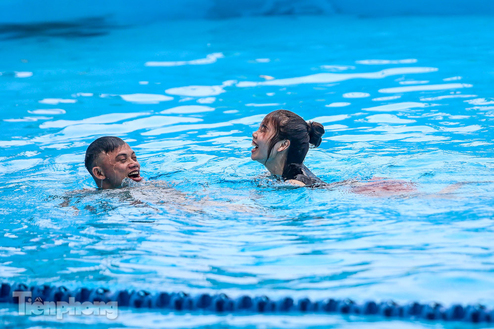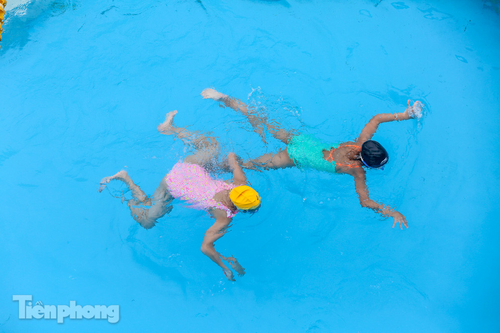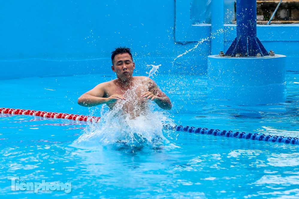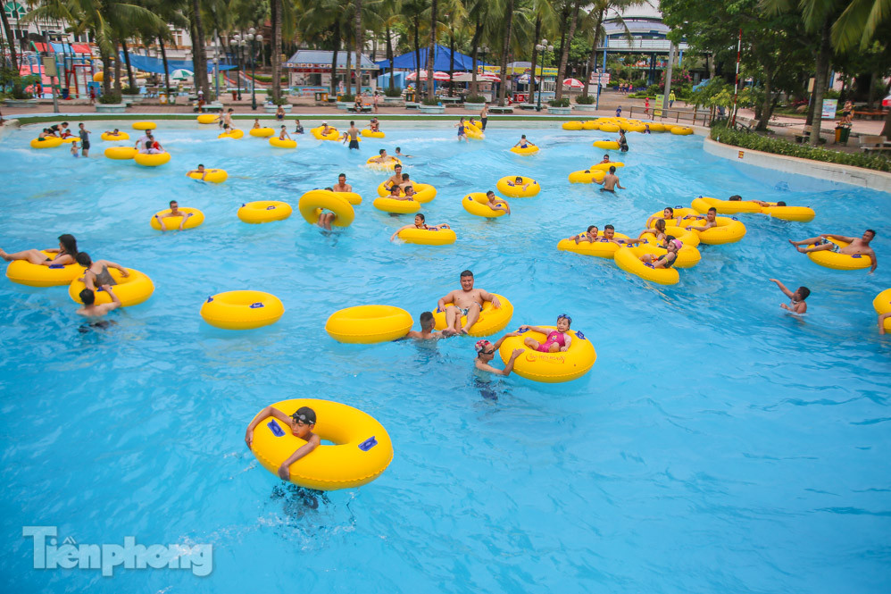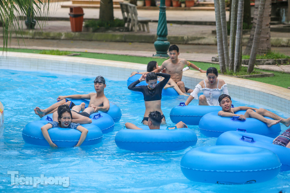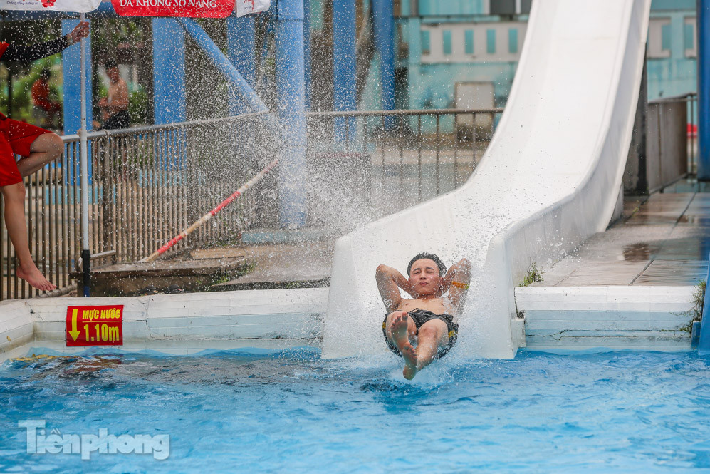 Nắng nóng kéo dài ở Hà Nôi trong suốt cả tuần, nhiệt độ luôn ở ngưỡng từ 35 đến 40 độ C. Trong điều kiện thời tiết như vậy, các bể bơi, công viên nước trên địa bàn Hà Nội trở nên hút khách.