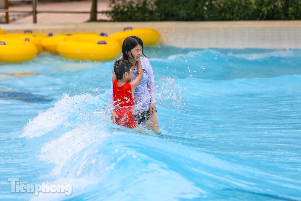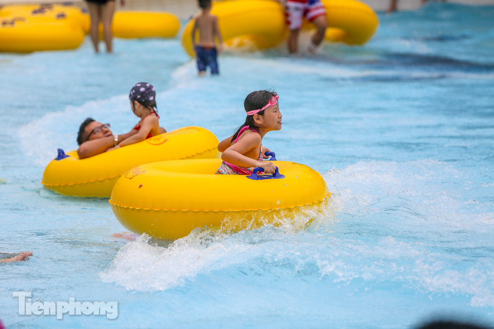 Nhiều trẻ em được phụ huynh đưa tới đây để "giải nhiệt" trong ngày cuối tuần.