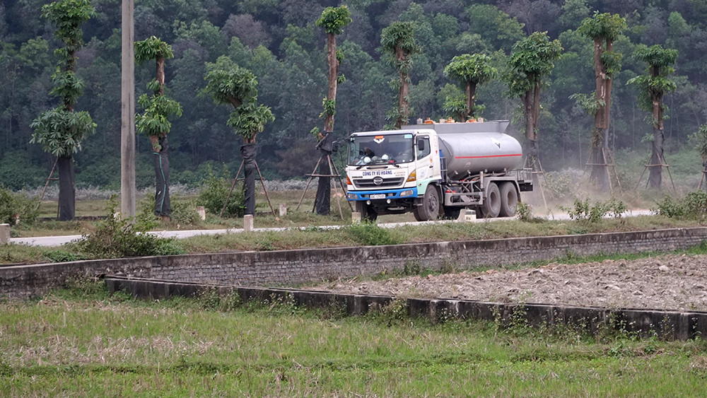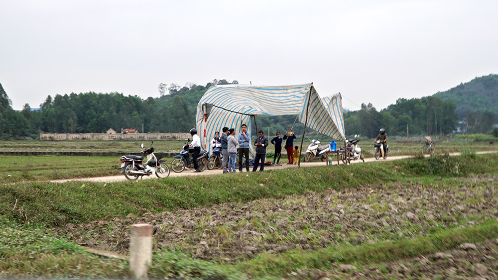 Cách cổng số 1 Khu liên hợp xử lý chất thải Nam Sơn (bãi rác Nam Sơn) khoảng 500 m, người dân thôn Hai, xã Hồng Kỳ vẫn căng bạt ra sát con đường chính dẫn vào bãi rác.