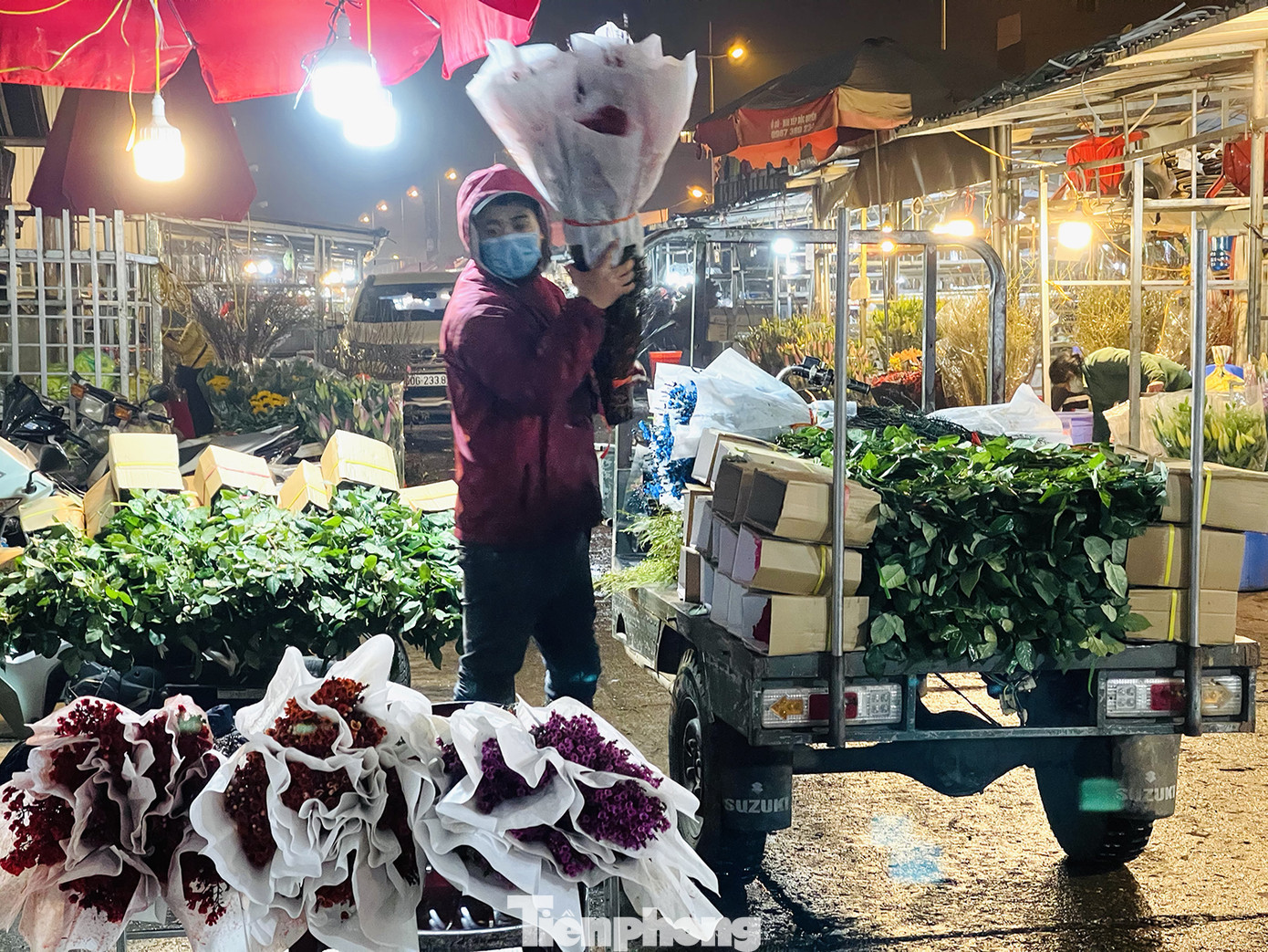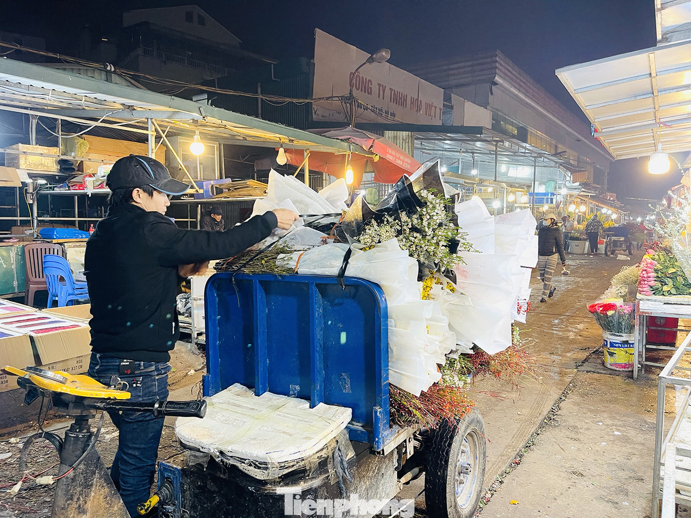 Thời điểm sau 2h sáng, khách lẻ hầu như không có mấy, chỉ còn lẻ tẻ khách buôn tới chở hoa phân phối tới các cửa hàng, điểm bán hoa tại Hà Nội..