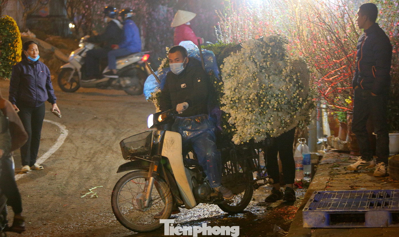 Lượng người đến xem và mua hoa rất thưa thớt, 23h đêm chỉ có các lái xe vận chuyển hoa tới chợ.