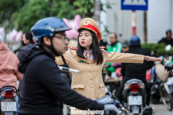 Bên ngoài đường vào Phủ Tây Hồ, các lực lượng năng liên tục phân luồng giao thông tránh ùn tắc.