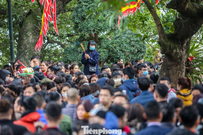 Nhiều người chọn cách vái vọng từ xa thay vì chen vào bên trong.