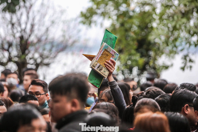 Rất nhiều người phải chen lấn mướt mồ hôi mới vào được bên trong cầu bình an.
