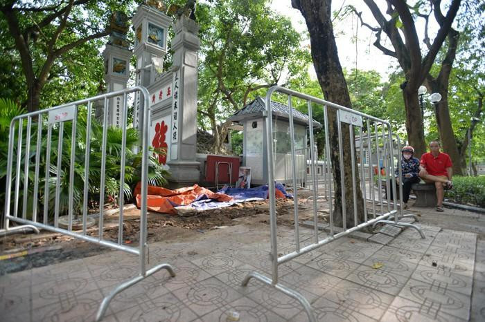 Mạng xã hội xôn xao thông tin phát hiện nền mộ cổ tại khu vực di tích đền Ngọc Sơn trưa 16/6. Liên hệ với ông Phạm Tuấn Long, Phó Chủ tịch UBND quận Hoàn Kiếm, ông Long cho biết ngày 12/6 trong quá trình thi công hạ ngầm cải tạo hồ thì phát hiện ra 7 ngôi mộ.