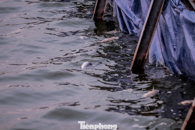 Tuy nhiên, theo ghi nhận vào chiều 19/10, xuất hiện nhiều cá chết dạt vào rìa ngoài khu thí điểm công nghệ Nhật ở Hồ Tây.