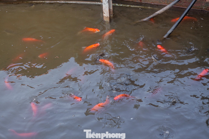 Trái ngược, bên trong khu thí điểm công nghệ Nhật, đàn cá Koi khỏe mạnh, tung tăng bơi lội.