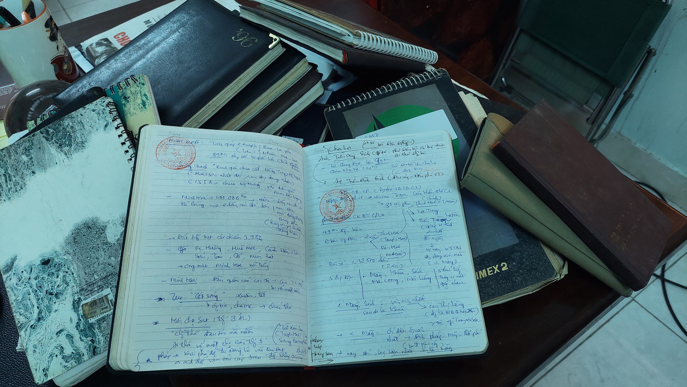 Cây bút và cuốn sổ, đôi công cụ sơ khai nhất của nghề báo từ buổi khai sinh đến nay, đến thời làm báo công nghệ này, hầu như đã biến mất. Thì mình bỗng dưng còn lại đây cái kho tàng nguyên thủy của nghề. Ôi chao, đời cứ tưởng lên non xuống biển, miên man miên mật thế nào, một lúc nhìn lại thấy còn nhúm chữ trong mấy cuốn sổ cũ mốc này đây.