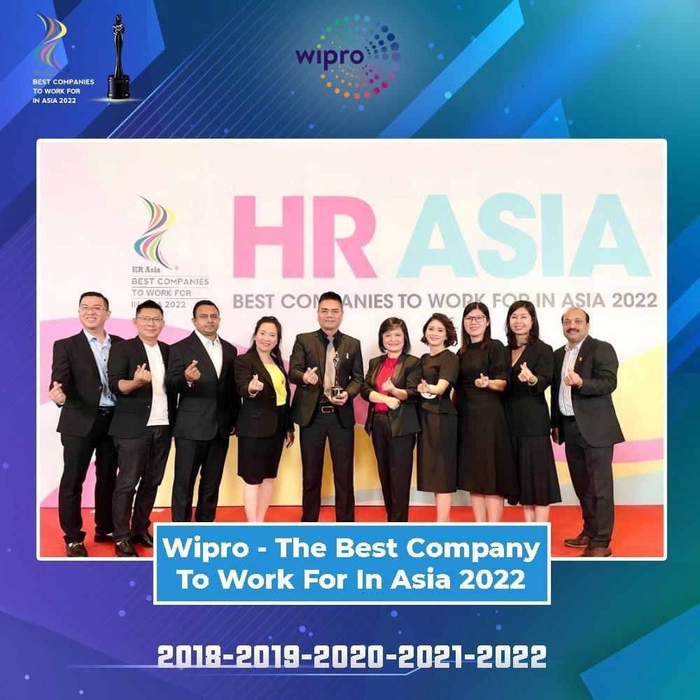 Tối 11/08/2022, Công Ty TNHH Wipro Consumer Care Việt Nam (gọi tắt là Wipro) đã vượt qua 622 doanh nghiệp được đề cử để vinh dự nhận giải thưởng “Nơi làm việc tốt nhất Châu Á - The Best Companies to Work for in Asia”, giải thưởng do HR Asia – tạp chí hàng đầu về Nhân sự khu vực Châu Á - tổ chức hàng năm.