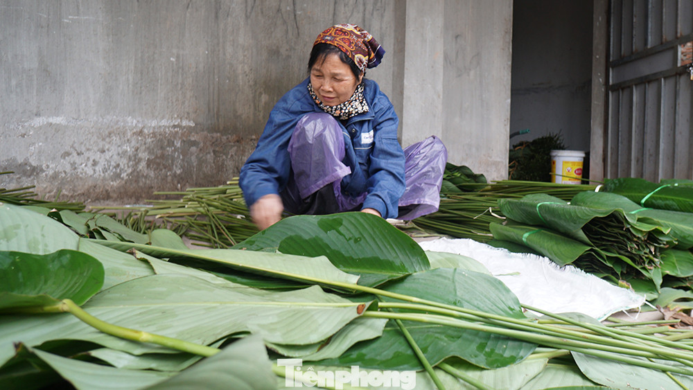Lá dong sau khi được phun rửa sạch sẽ để phơi khô ráo nước rồi bó lại từng bó chờ thương lái đến mua hoặc tự vận chuyển đến những nơi cần tiêu thụ. Theo người dân ở đây, lá sau khi cắt để được 20 ngày, mỗi ngày tưới một ít nước. Hiện tại các gia đình trong thôn phần lớn là cắt lá dong ở vườn về rồi xếp loại, bó thành từng bó nhỏ với số lượng 100 lá. Thời điểm đầu vụ, giá dao động từ 100.000 đến 120.000 đồng/100 lá tùy thuộc vào to hay nhỏ.