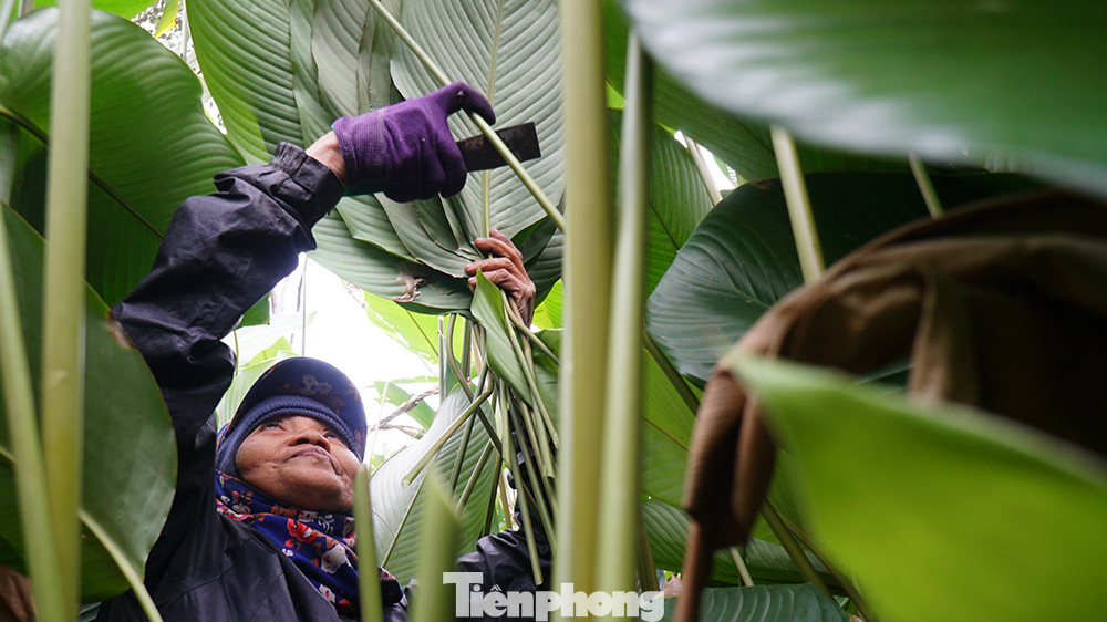Theo anh Nguyễn Kim Điệp - Chủ vườn lá dong chia sẻ: "Vào vụ chính sẽ bắt đầu vào dịp giáp Tết, từ ngày Rằm tháng Chạp là người dân đã thu hoạch lá đến Tết. Dịp này sẽ cắt hết luôn để dịp ra Giêng sẽ ra lá mới, lá dong sau một vụ thu hoạch giống như cây tre sẽ mọc và phát triển thành từng khóm và không phải trồng lại".