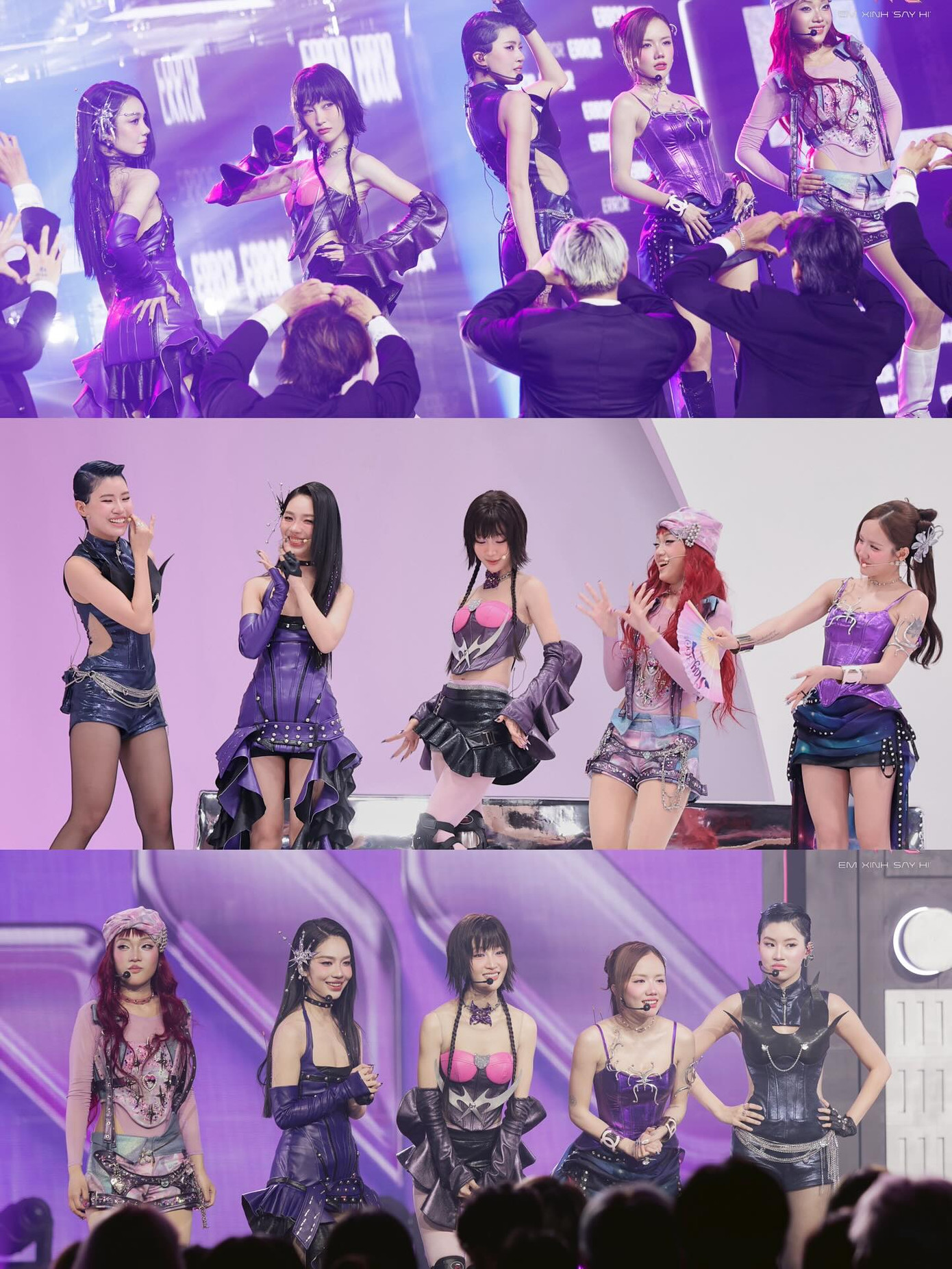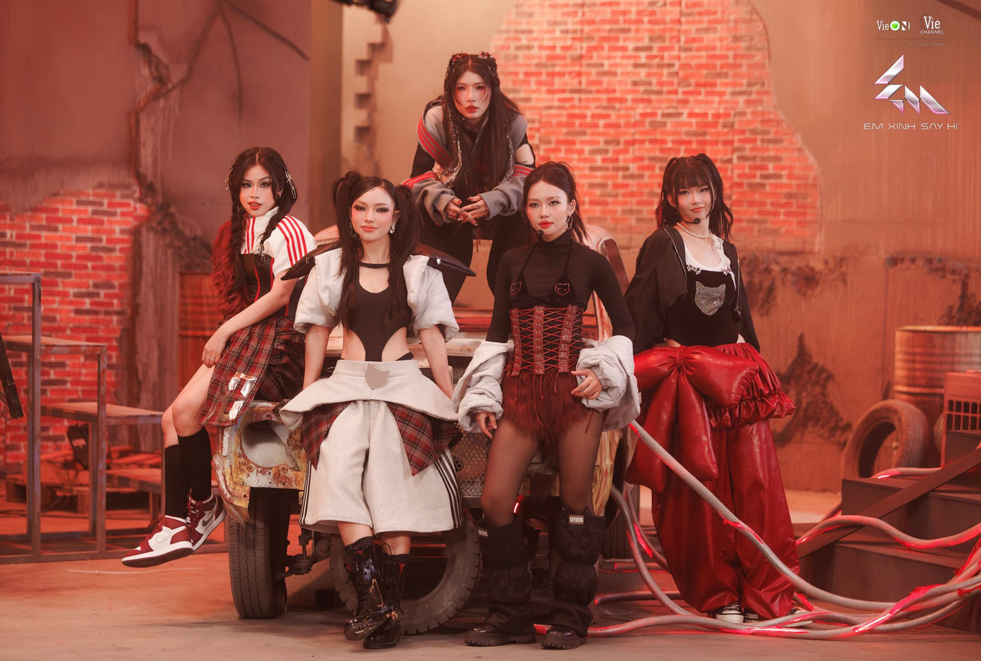 Em Xinh Em Bling được lựa chọn để mở màn vòng thi Live stage 1. 5 mỹ nữ quay trở về những năm 80s trong gam màu neon tím hồng, phong cách disco/glam rock.