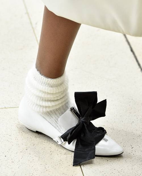 Những chiếc nơ to bản tưởng như đã lỗi mốt từ lâu thì bỗng chốc có một màn comeback vô cùng hoành tráng trên khắp các sàn catwalk mùa Thu Đông năm nay. Từ những thương hiệu lớn như Prada hay Ganni đều nhiệt tình lăng-xê những đôi giày có thiết kế kèm nơ to bản.