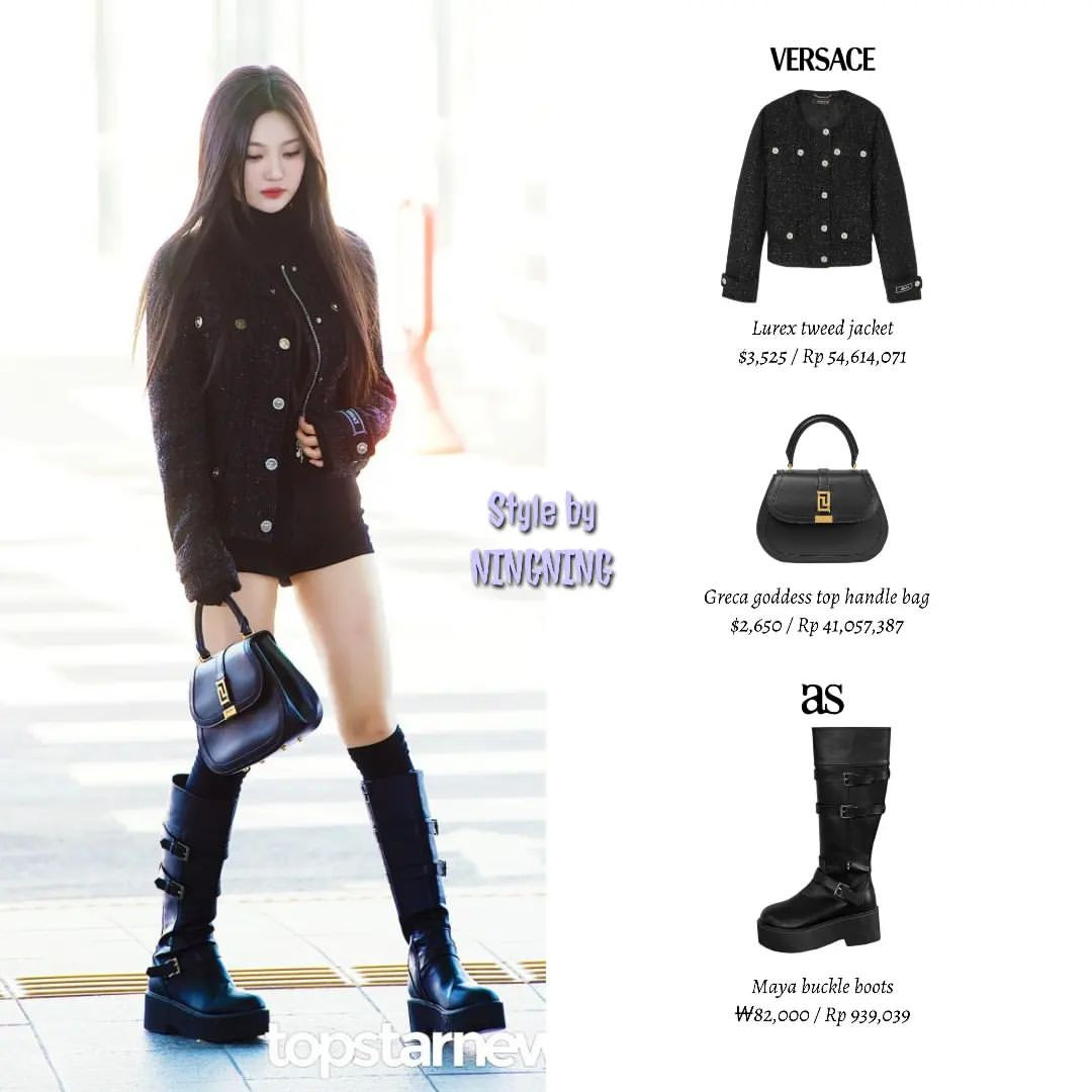 | Giao diện "phú bà" Versace của Ning Ning aespa tại sân bay khởi hành tham dự sự kiện của nhà mốt Ý vào ngày 17/10 vừa qua. |